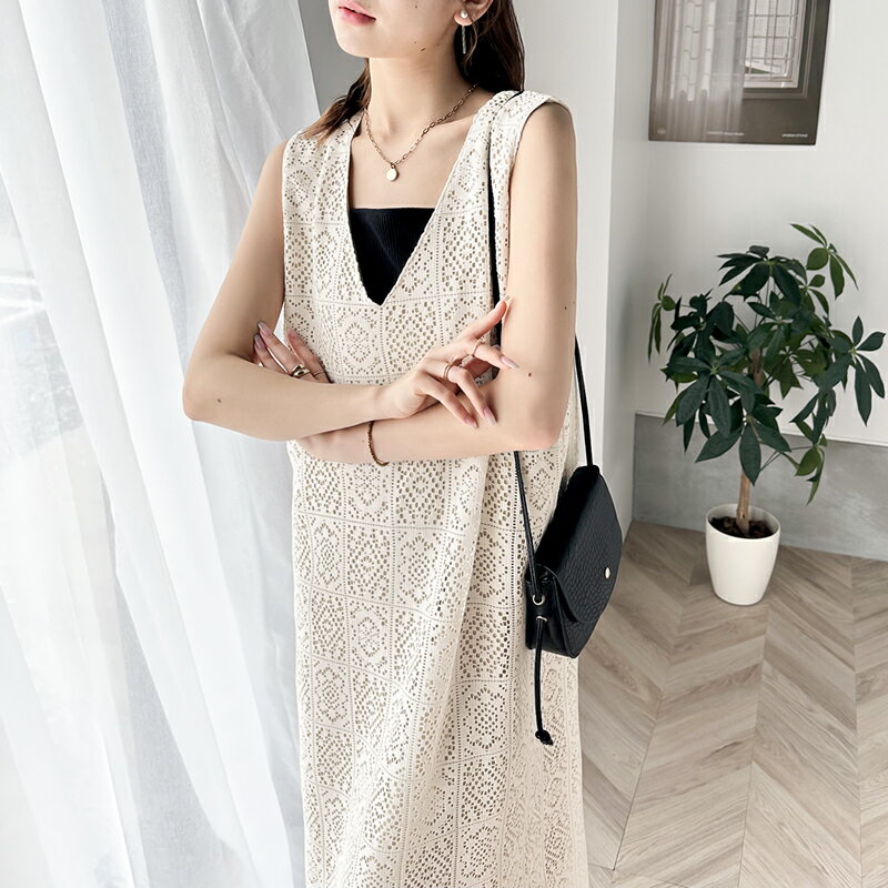 送料無料 ワンピース レディース 前後 2way レトロ レース ジャンパースカート 大きいサイズ ゆったり 体型カバー クルーネック Vネック Iライン レイヤードコーデ スタイルアップ 春 夏 2024ss クラシカルエルフ ce1010207